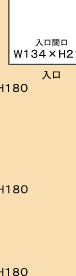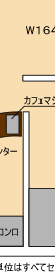 ※店内図入口左側の四角の部分は現在ご使用頂けません。 これに伴い、W163cm×H180cmとしております左側上部の壁面サイズはW115cm×H180cmとなります。